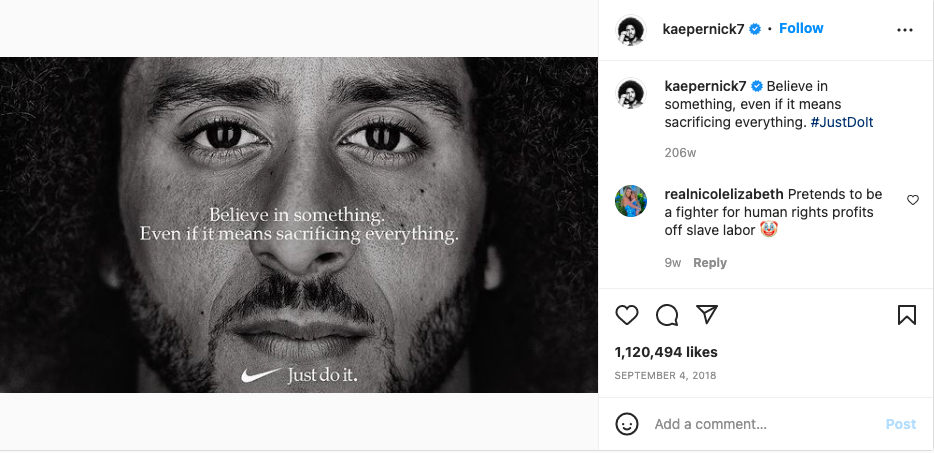Some thought Nike took a risk when they chose to feature racial injustice protestor and former NFL quarterback Colin Kaepernick in an ad campaign. Many were outraged (including Donald Trump), but Nike knew their audience - sales increased 31% after the ad went live.